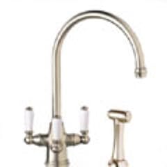 The Corinthian Triflow TFC400 Faucet Features Triple Levers, Gooseneck Spout, Side Sprayer And Built In Filtration System. Contains Dedicated Waterway Connected To Under Counter Filter. Fits 2 Hole Applications. Spout Height 9-1/4". Spout Reach 9-1/4. Includes Side Spray. Includes Porcelain Lever Handles. Filtration System Included. .