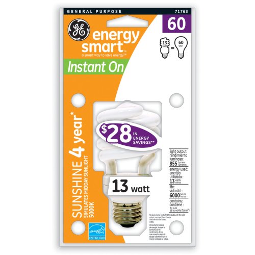 Read more GE 71763 13-Watt Energy Smart Instant-on Sunshine CFL (60-Watt equivalent) Light Bulb